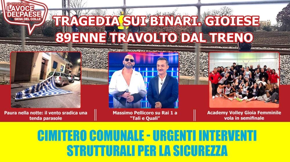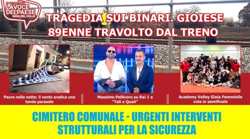 Tragedia sui binari. Gioiese 89enne travolto dal treno