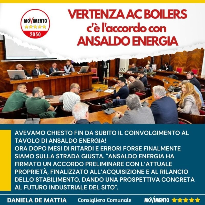 Accordo vertenza A.C. Boilers. M5S: “Forse siamo sulla strada giusta”